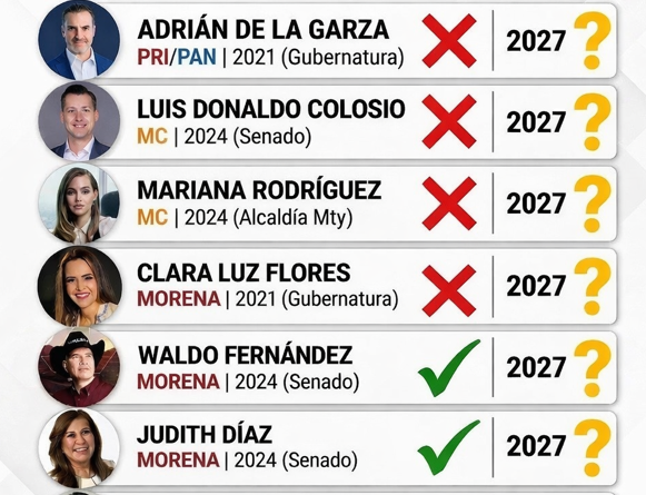 Dentro del partido también figuran Waldo Fernández y Judith Díaz, quienes, a diferencia del resto, llegan con el impulso de haber ganado la elección al Senado en todo el estado, posicionándose como los únicos perfiles con una victoria reciente a nivel estatal.